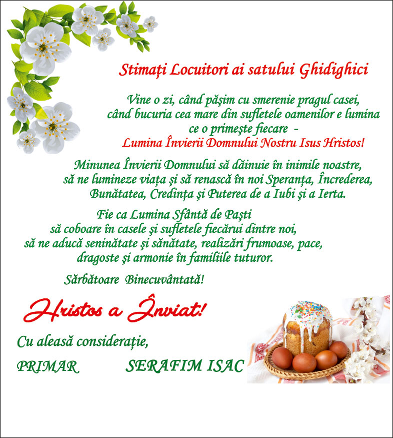 Sincere felcitări cu ocazia Sărbatorilor pascale