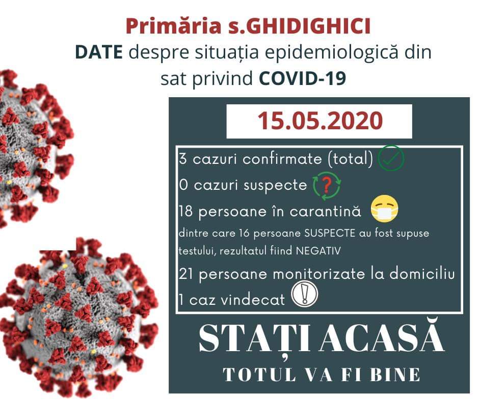 Informația actualizată despre situația epidemiologică din sat privind Covid-19 la data de 15.05.2020